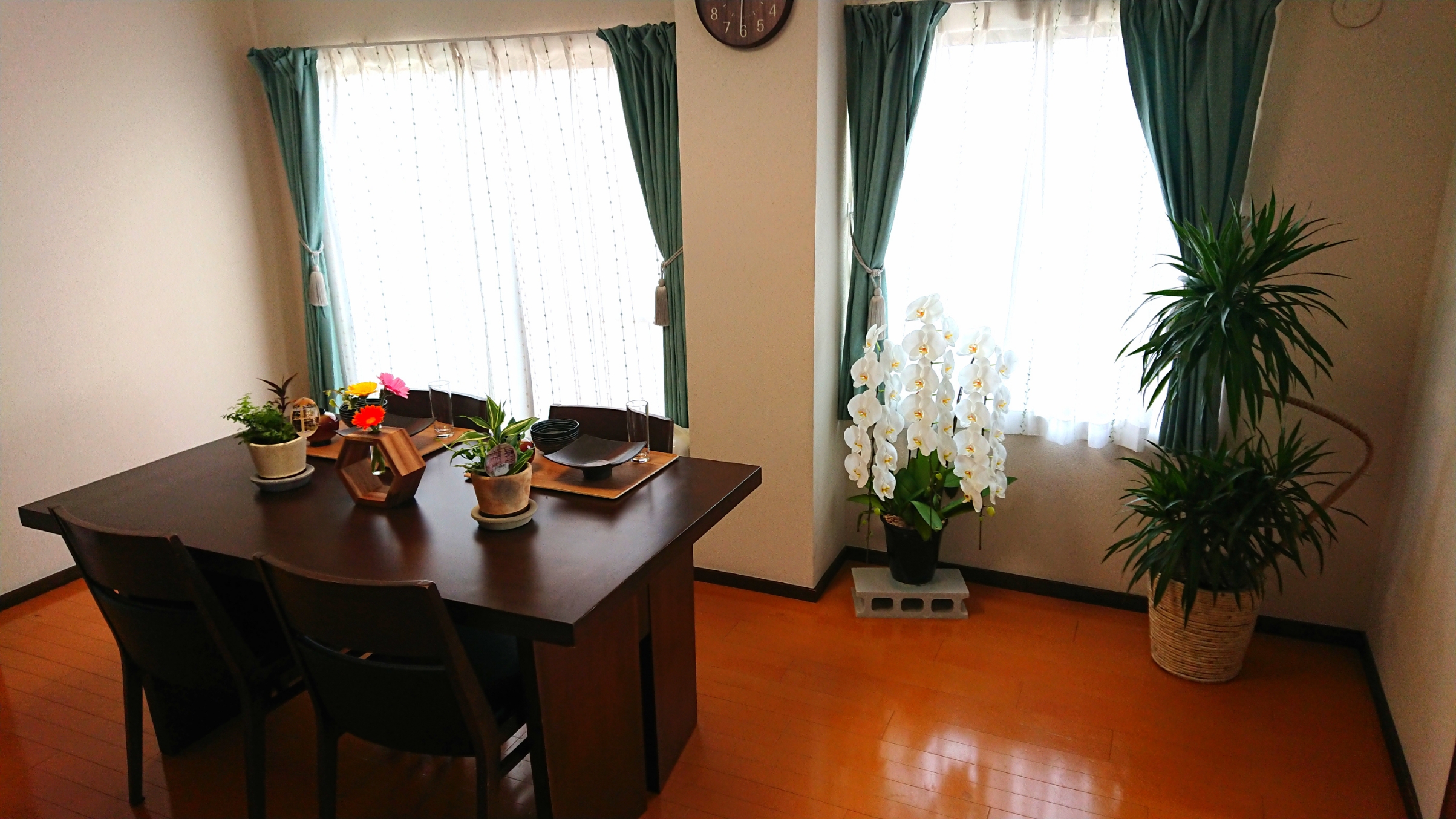 花と緑のあるダイニングルーム